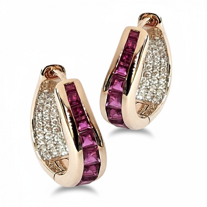 - Laika pārbaudīta greznība, pārdomāts dizains: izsmalcinēts rozā zelta auskaru pāris, kas pārvērš jebkuru ikdienas kostīmu par svinīgu tērpu. - Uzmanību piesaistošie rubīni: rindā rūpīgi iestiprinātie rubīni, pie katras kustības sniedz dziļu sarkanu toņu spēli gaismā. - Mirdzošs accents: delikātā pavé stiprinājumu veidā rubīnu līniju papildina spoži briljanti. - Siluets un apdare: liegani izliektā riņķveida auskaru forma veido mūsdienīgu un laikmetīgu šarmu; rūpīgi pulētās zelta līnijas spīd un akcentētē krāsu skaistumu. - Ideāla rota īpašiem pasākumiem, jubilejām vai, lai piešķirtu izteiktu eleganci ikdienai. - Roku darbs un kvalitāte: 585 zelta auskari , ērtas auskaru aizdares; rubīni izvēlēti pēc krāsu toņa un tīrības. |