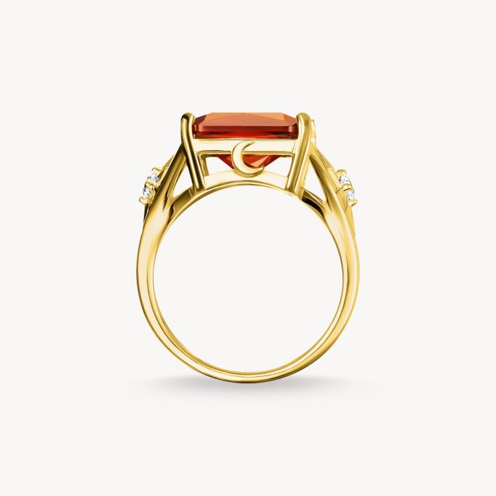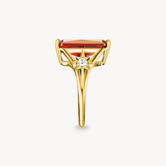 Piezīmes: | Dzeltenā zelta pārklājuma 925. proves sudraba kokteiļgredzens sievietēm ar lielu oranžu akmeni un zvaigznēm. Izteiksmīga rotaslieta ar stikla keramikas akmeni centrā. Augstas kvalitātes rotaslietas ar roku darinātiem slīpējumiem un detaļām.Skatoties uz šo mirdzošo lielo stikla keramikas akmeni dziļi oranžā krāsā, ir kā vērot iespaidīgu saulrietu. Tā astoņstūra slīpējums un atvērtie gredzena ietvari pastiprina starojošo spīdumu. Šī zelta gredzena sānus rotā divi pusmēness un divi zvaigžņveida ietvari ar baltiem cirkonija akmeņiem. Materiāla un dizaina mijiedarbība rada mirdzošu uzmanības piesaistītāju īpašiem notikumiem. Ar šo zelta akmens gredzenu nākamais maģiskais saulriets vienmēr ir jūsu. |