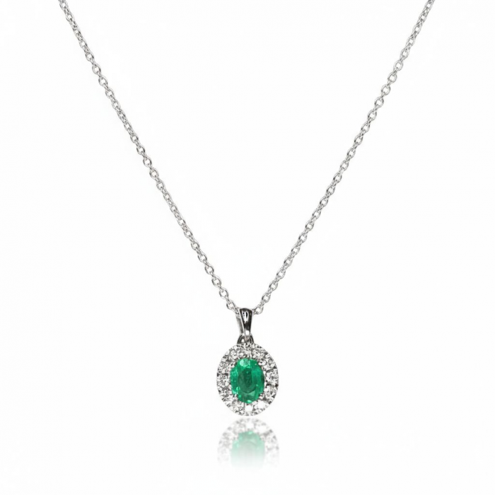 ALBERTI ЗОЛОТОЕ КОЛЬЕ С БРИЛЛИАНТАМИ И ИЗУМРУДОМ