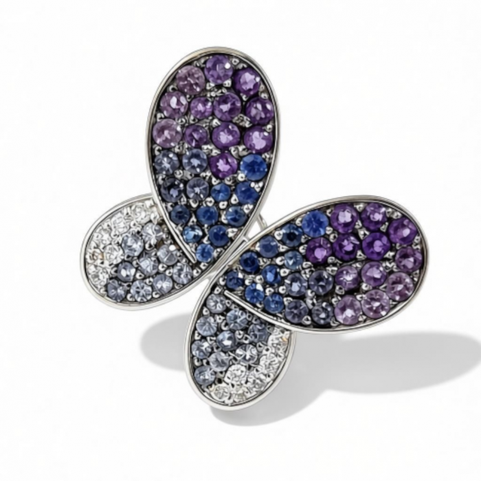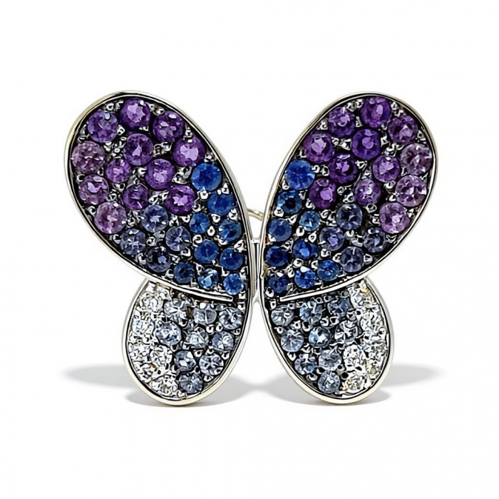 | Akmeņi: | briljanti: 0.15 ct, W-SI; safīri: 0.60ct; iolīti: 0.20ct; ametisti: 0.93ct |